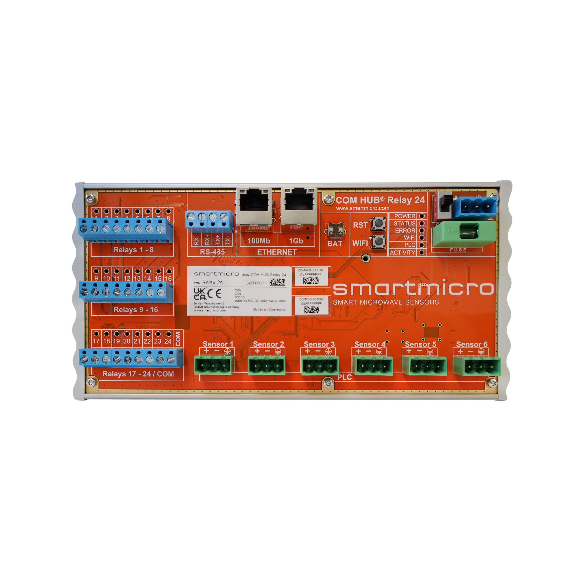 The COM HUB Relay 24 offers all the features of the COM HUB Relay 8, plus the ability to connect to up to 4 sensors and provide 56 relay outputs when paired with the Relay 32 XP Module. This makes it the perfect choice for more complex traffic detection setups where a greater number of sensors and relay outputs are required.