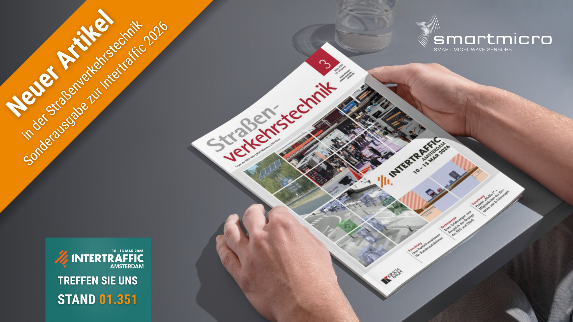 Erleben Sie auf der Intertraffic Amsterdam vom 10.03.–13.03.26 an Stand 01.351, wie smartmicro Detektion, Tracking und hybride Sensorkonzepte für ein modernes und effizientes Verkehrsmanagement umsetzt.