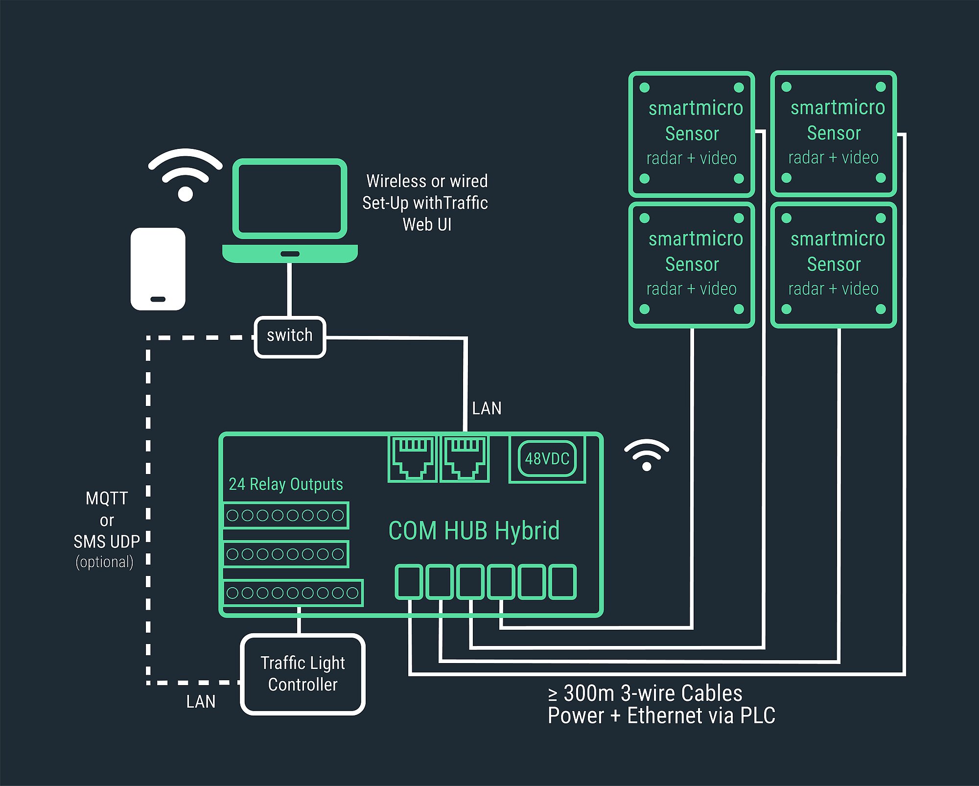 Seamless Tracking definiert einen neuen Standard im modernen Verkehrsmanagement. Durch die Fusion mehrerer Sensoren wird eine konsolidierte Objektliste erzeugt und ermöglicht eine kontinuierliche Objektverfolgung an Kreuzungen. Grundlage hierfür ist die Kombination aus COM HUB (das Herzstück der vernetzten Verkehrserfassung, welches alle Sensordaten synchronisiert und in Echtzeit verarbeitet) und Radar-Sensoren. Das neue Hybrid-System erweitert diesen Ansatz durch den kombinierten Einsatz von radar- und videobasierter Detektion. Durch die Kombination beider Technologien entsteht eine noch leistungsfähigere Verkehrserkennung.
