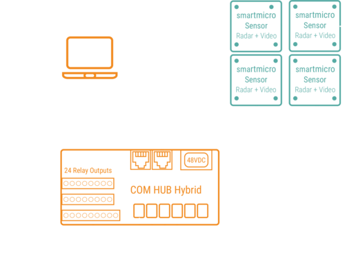 Radar point clouds and visual streams are processed and fused via the COM HUB Hybrid interface, ensuring seamless tracking and highly reliable object detection across multiple lanes and multiple approaches.